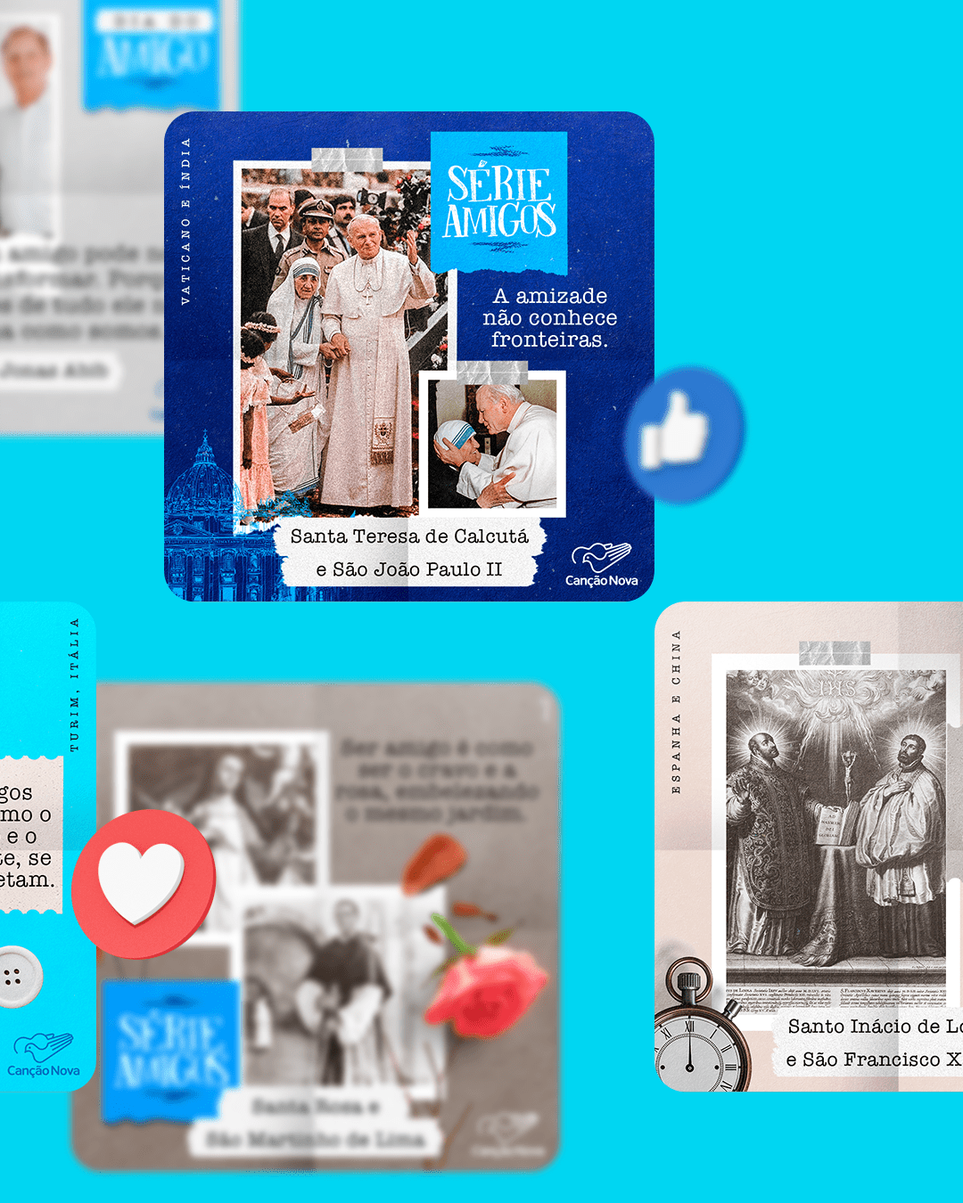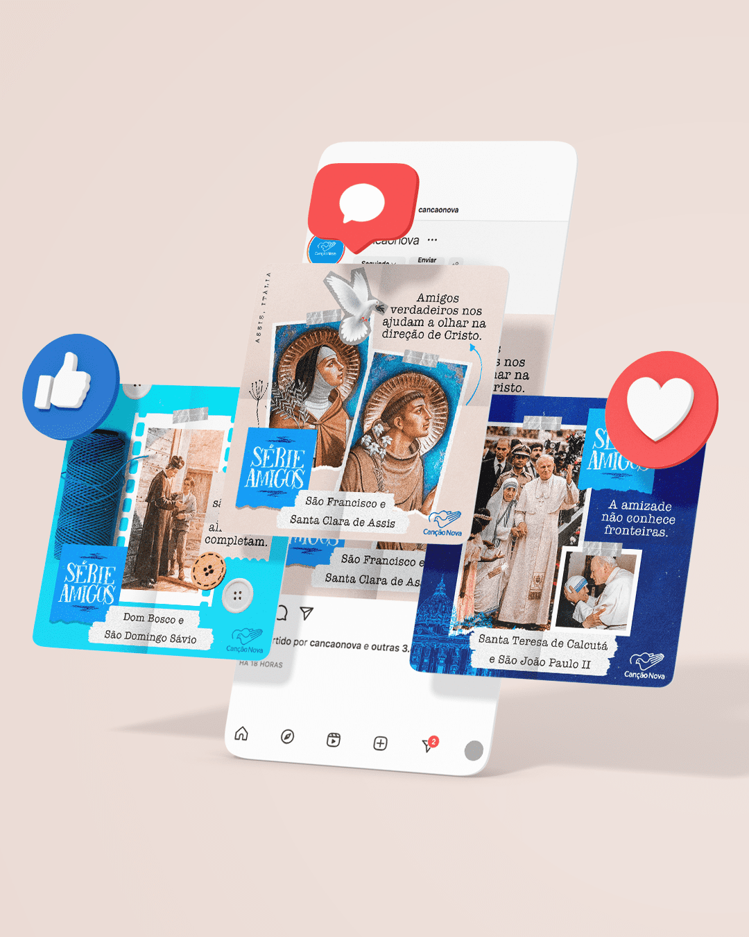 Desenvolvimento de identidade visual e posicionamento de marcas católicas.