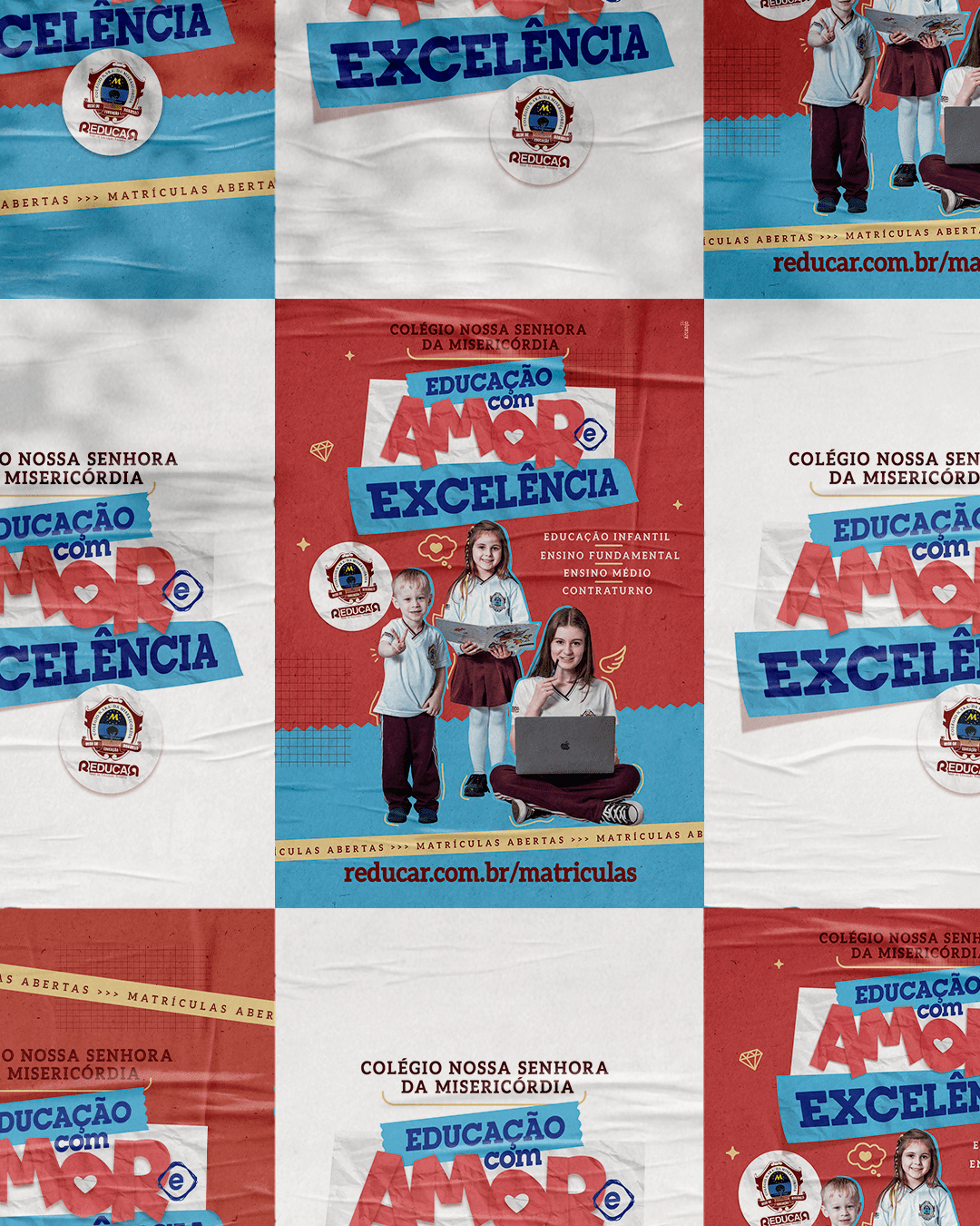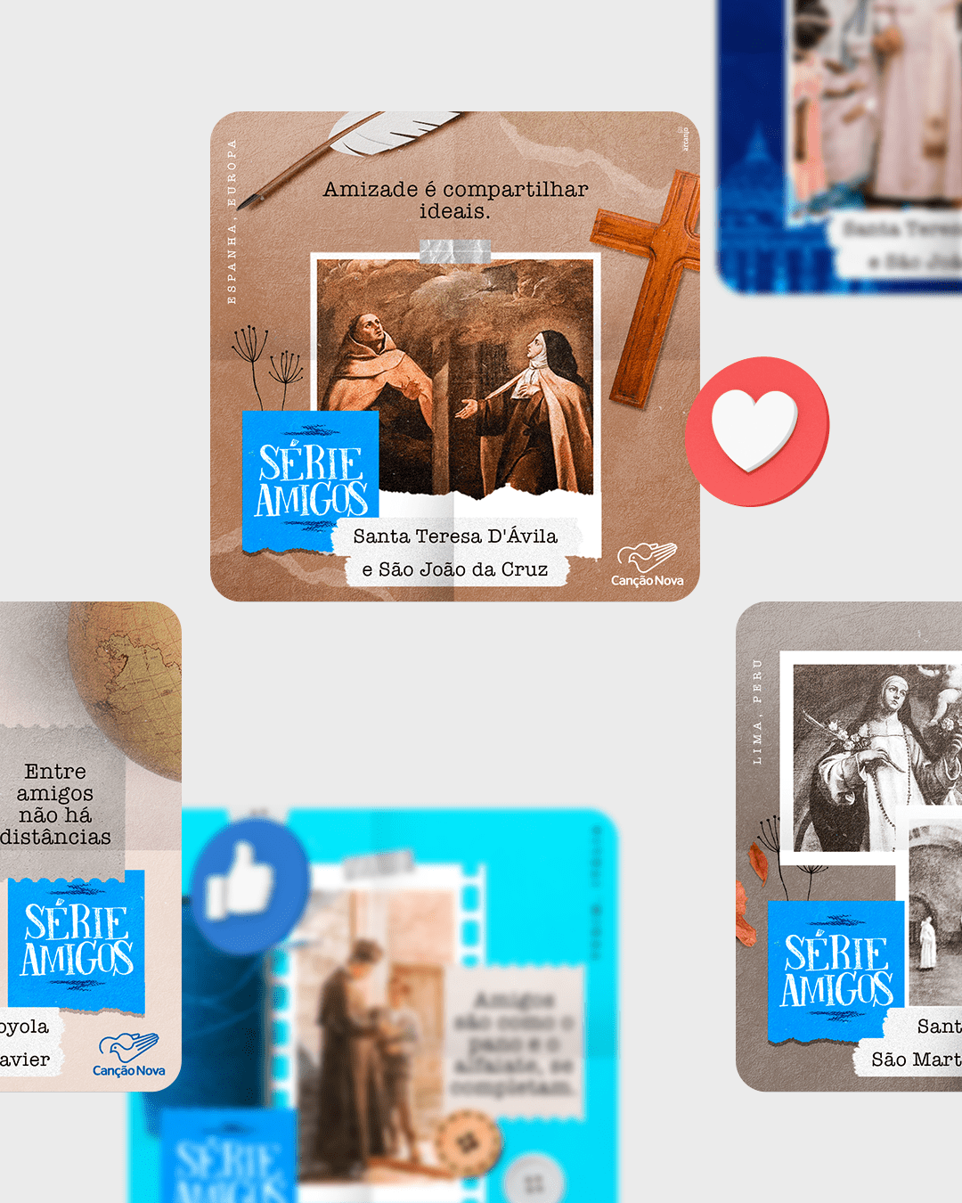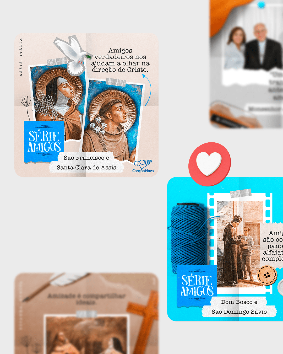 Desenvolvimento de identidade visual e posicionamento de marcas católicas.